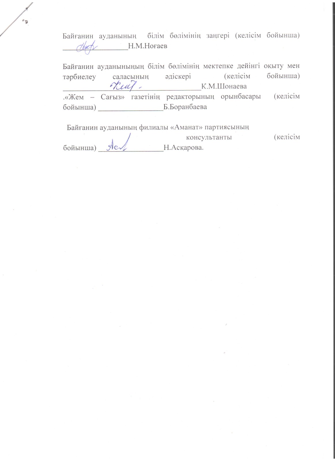 .Білім бөлімінің заңгері- Н.М. Ноғаев
