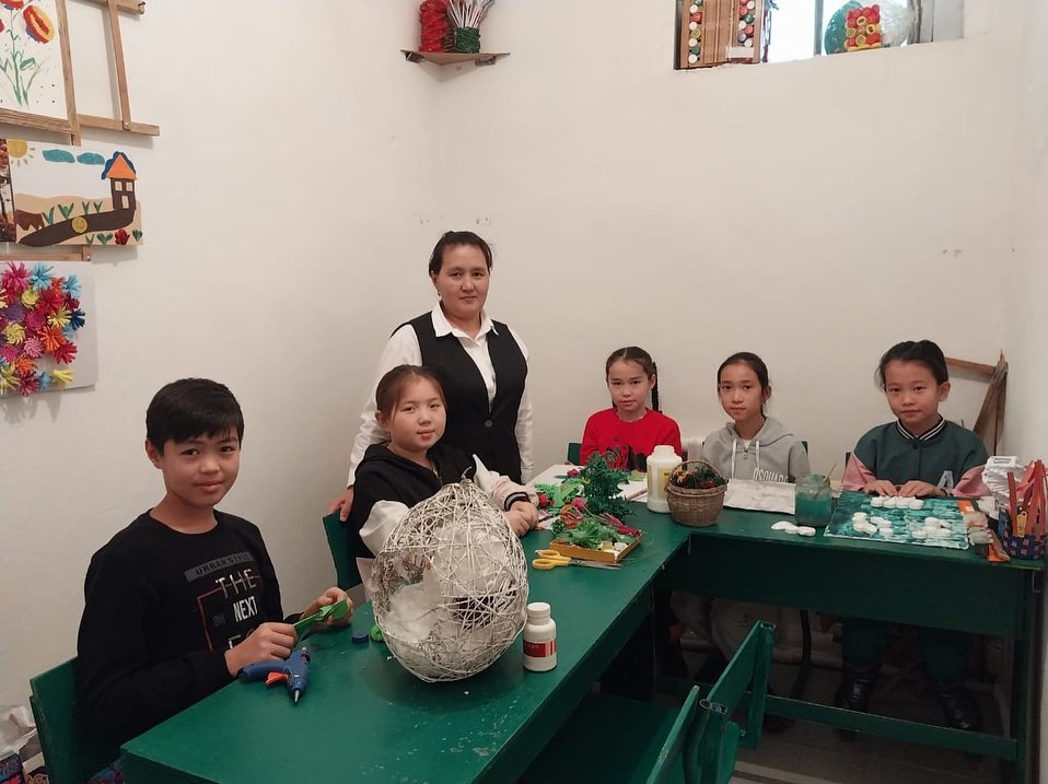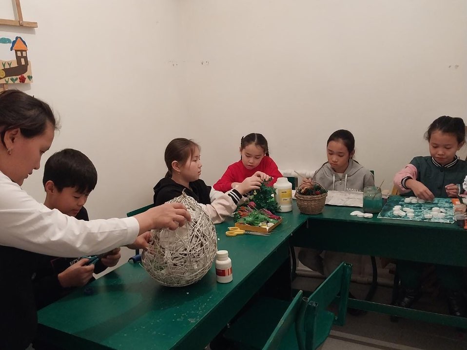"Қолданбалы-декоративті өнер" үйірмесінің мүшелері сабақ барысында