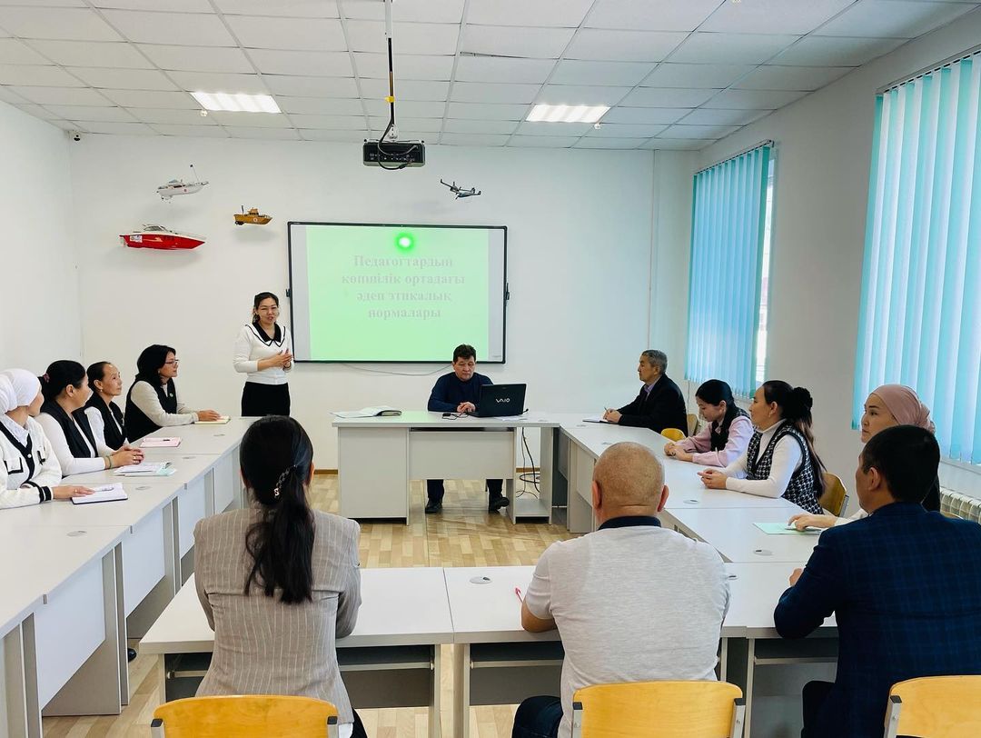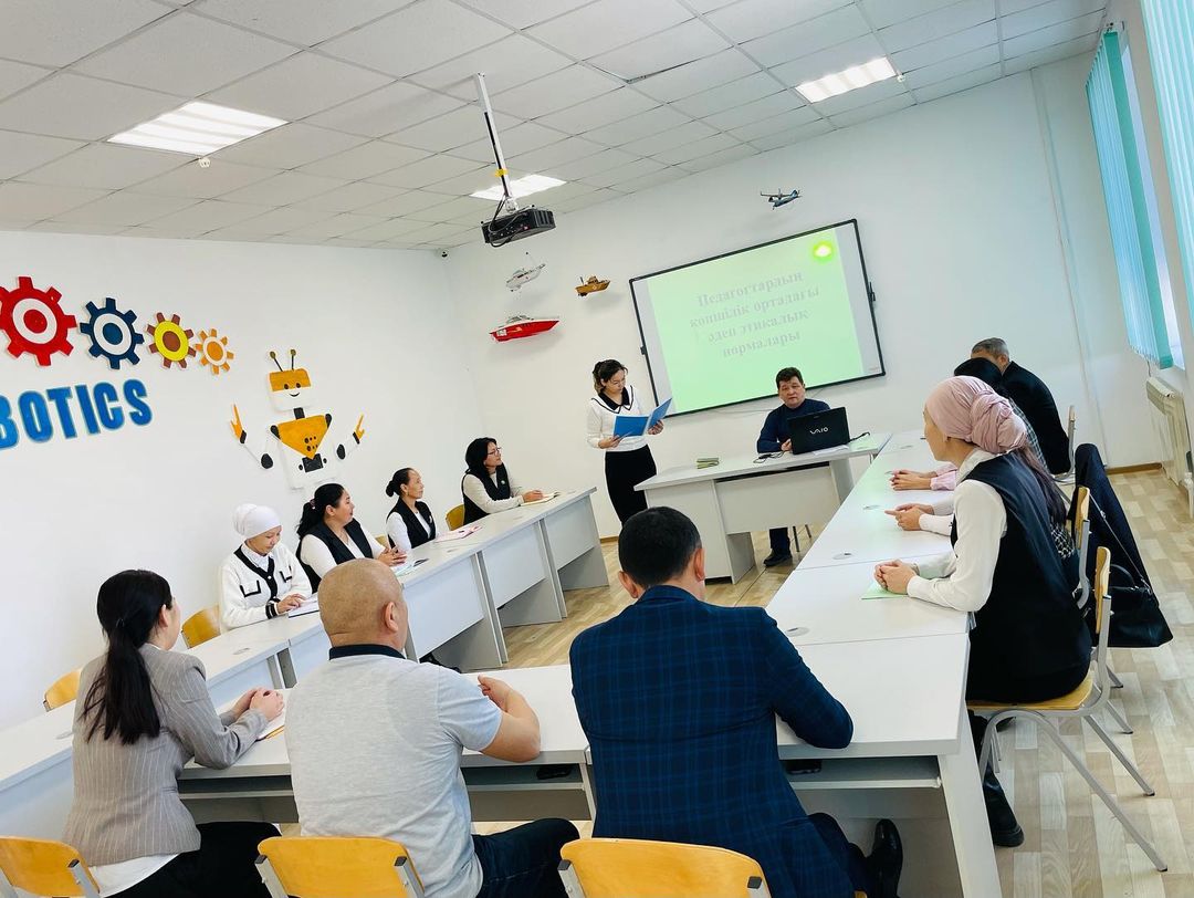 Педагогикалық әдеп жөніндегі кеңес отырысының жоспарына сәйкес "Педагогтардың көпшілік ортадағы әдеп этикалық нормалары" тақырыбында семинар-тренинг өтті.