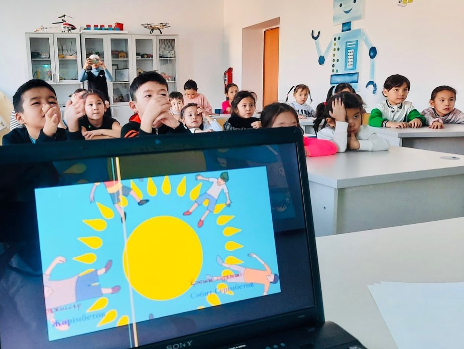 үйірме мүшелерін Отансүйгіштікке, адамгершілікке, рәміздерді құрметтеуге тәрбиелеу мақсатында үйірме мүшелеріне "Көк ту және достар" атты мультфильм көрсетілді.